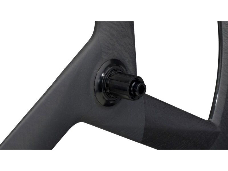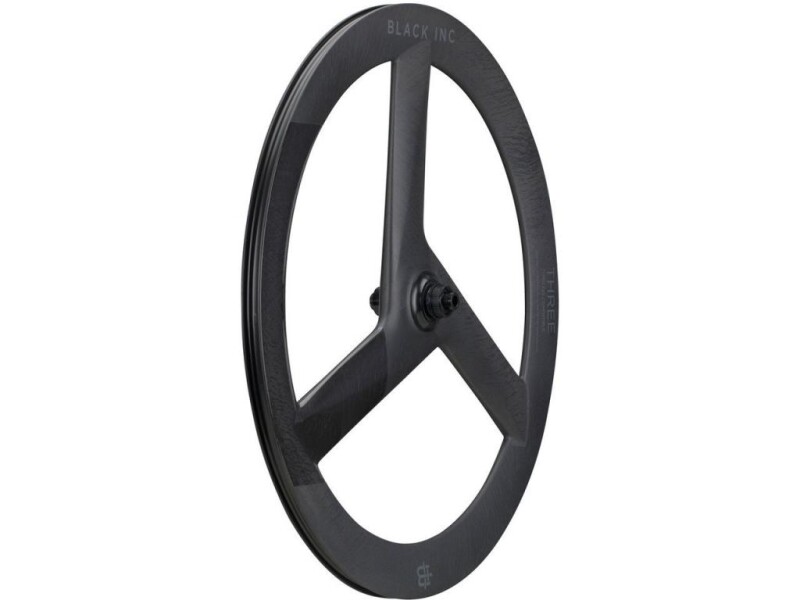 The Black Inc THREE is as close to a front disc while still being able to turn. The reduction in rotating spokes directly reduces the large surface area of the tri-spoke wheel, creating the sail effect and decreasing drag.