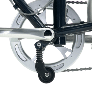 neden bunu daha önce düşünmemiştim" kategorisine giren bu alet , topuktan basit bir vuruş ile kullanıma hazır hale gelir. Seleyi yukarı kaldırın ve bisikletinizi istediğiniz yerden kolayca yürütün. Teker dizaynı rahatça ve yumuşak bir şekilde katlanarak yürütmeyi sağlar.