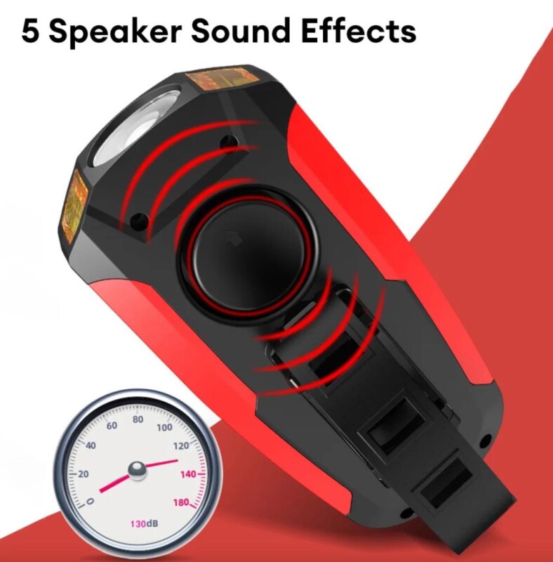 8. 130 yüksek desibel sağır edici ses, 5 hoparlör modu isteğe bağlı ve kesinlikle sizin için uygundur; 5 aydınlatma modu, 350 lümen çıkış, evinize giden yolu aydınlatır.