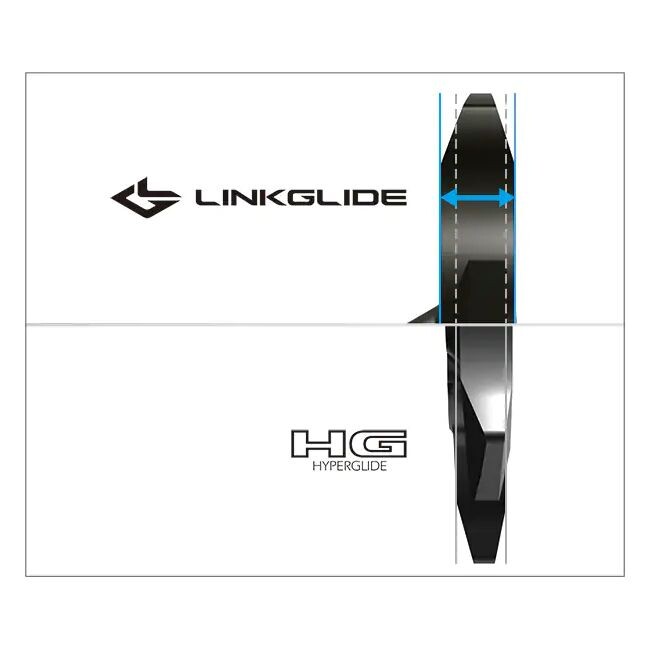 LinkGlide vites değiştirme yardımcılarının optimize edilmiş tasarımı, vites değiştirmeyi ve yuvarlak pedalı etkileyebilecek atlamaları önlemek için dişliler arasında daha yumuşak bir geçiş sağlar. Yeniden tasarlanan LinkGlide dişlilerinin kendisi çok daha güçlü bir tabana ve yüksek tork uygulamalarında aşınma direncini önemli ölçüde artıran benzersiz bir pah özelliğine sahiptir.