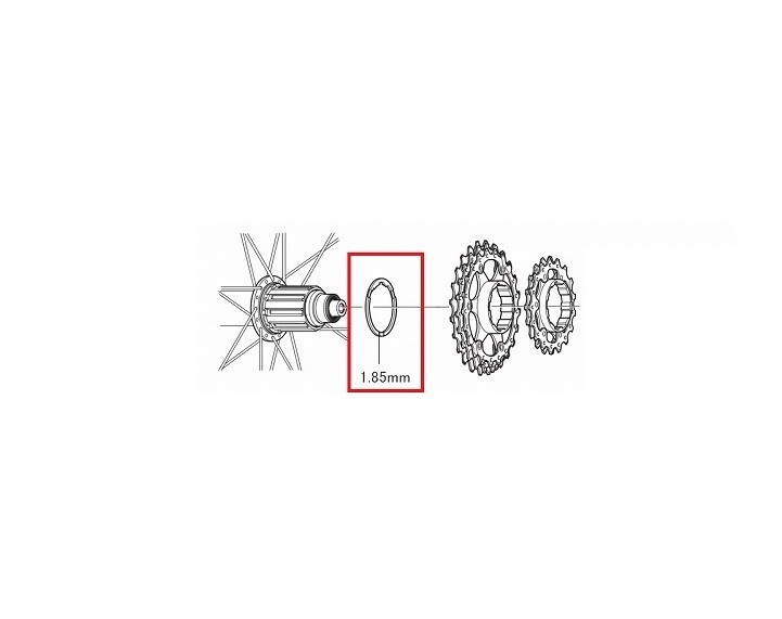 Yol bisikleti ve MTB kasetlerinde serbest göbek gövdeleri için 1,85 mm kalınlığında Shimano ara halkası.